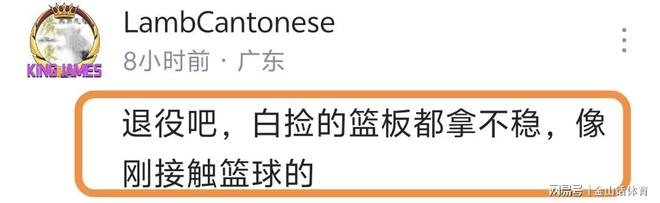 进攻大空位不中,上空篮不中,抢到的篮板又“黄油手”运出界升,张皓嘉糟糕的表现,也让众多包括广东球迷在内的网友怒不可遏。“赶紧滚啊”;“退役吧,白捡的篮板都拿不稳,像刚接触篮球的”;“真不知道他在场上干嘛”。